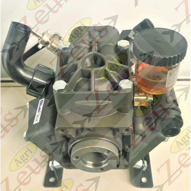 The AR 503 model is characterized by the presence of 3 semi-hydraulic diaphragms in NBR, Desmoplan or Viton rubber, high pressure air chamber, seals in NBR or Viton rubber. All components that come into contact with liquids are made of plasticized aluminium. Furthermore, the sprayer pump has die-cast casings with mechanical gears in an oil bath, the tank is made of transparent plastic material for good visual control of the liquid level. In addition, it features an oil drain plug and segmented pistons for greater efficiency of the "oil cushion" system.